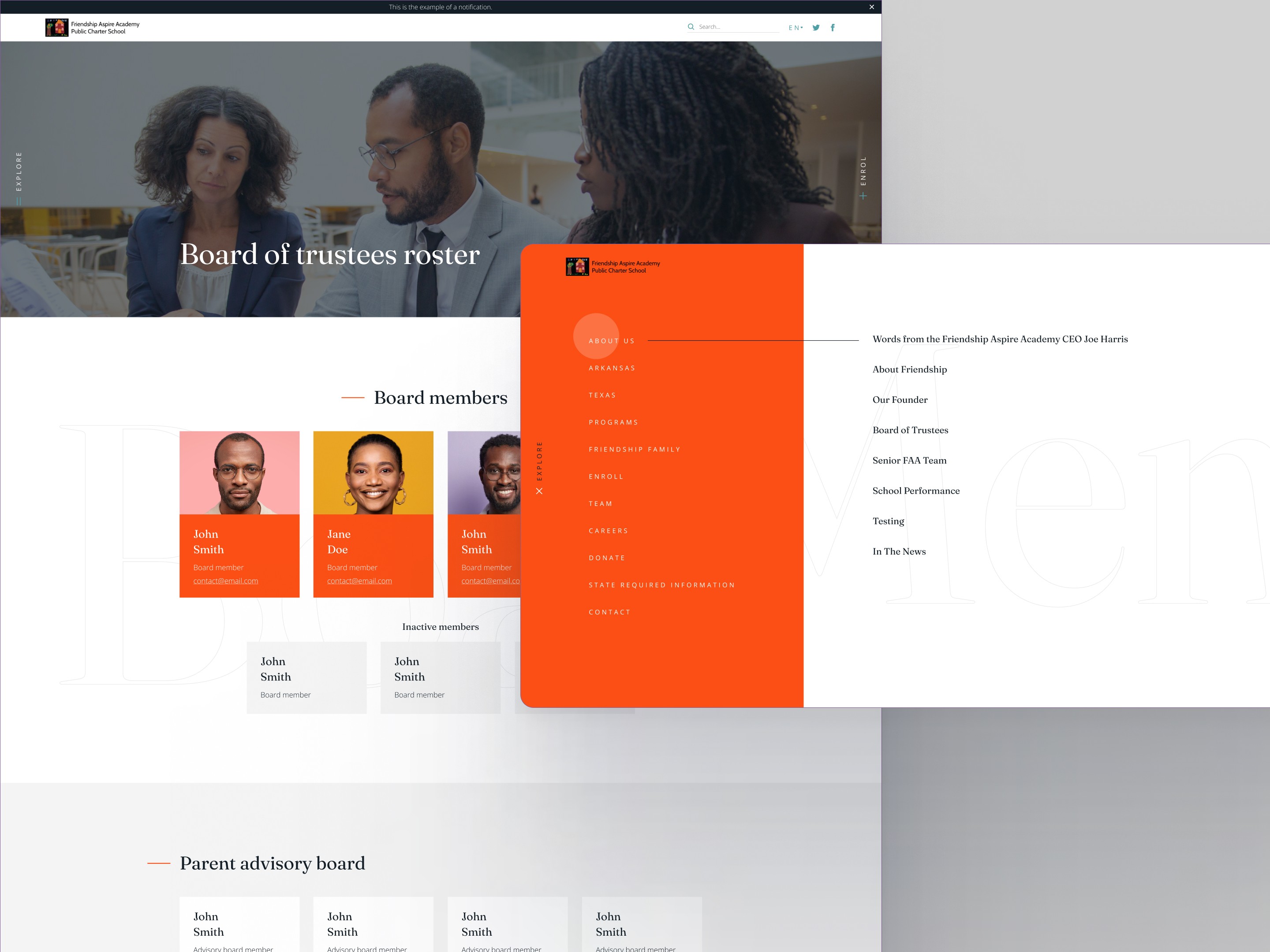 As the UI/UX designer for the Friendship Aspire Academy website, I crafted a platform that embodies the institution's dedication to academic excellence and community engagement. The website serves as a comprehensive hub, offering insights into the academy's mission, campuses, enrollment procedures, and latest news